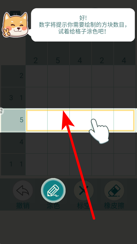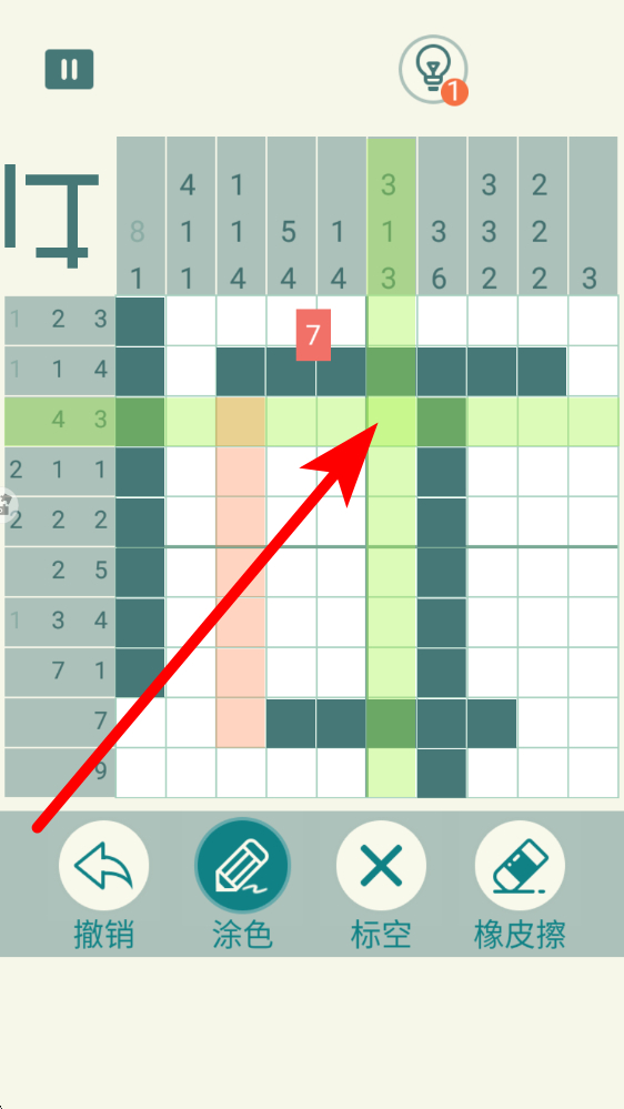 1、进入数独界面,选定数独模式,界面呈现带数字提示的方格,数字代表该行、列、宫格内需填充的数量,依据提示确定涂色或填数区域。