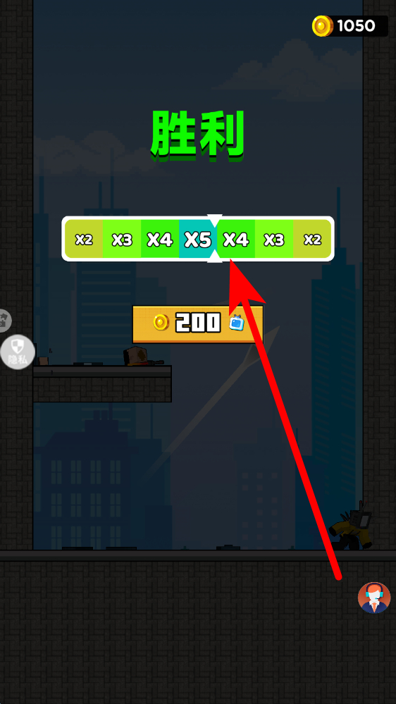 3、成功让角色到达目标位置安全平台,界面显示胜利,获取金币奖励,可以用于解锁升级能力,继续挑战更高难度关卡游戏体验。