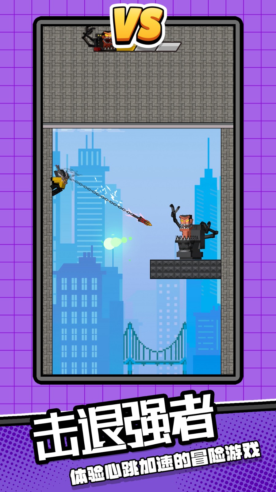 3、操控角色,利用场景平台、武器技能,躲避机器首领攻击,寻找输出时机,击败首领后获取奖励,用于解锁更多皮肤提升战力,循环挑战。