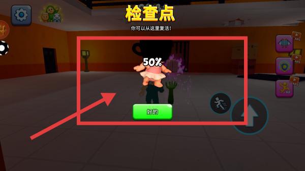 3、到达【检查点】后,看到复活提示,界面显示【50%】进度,记得点击【好的】确认,方便后续复活。