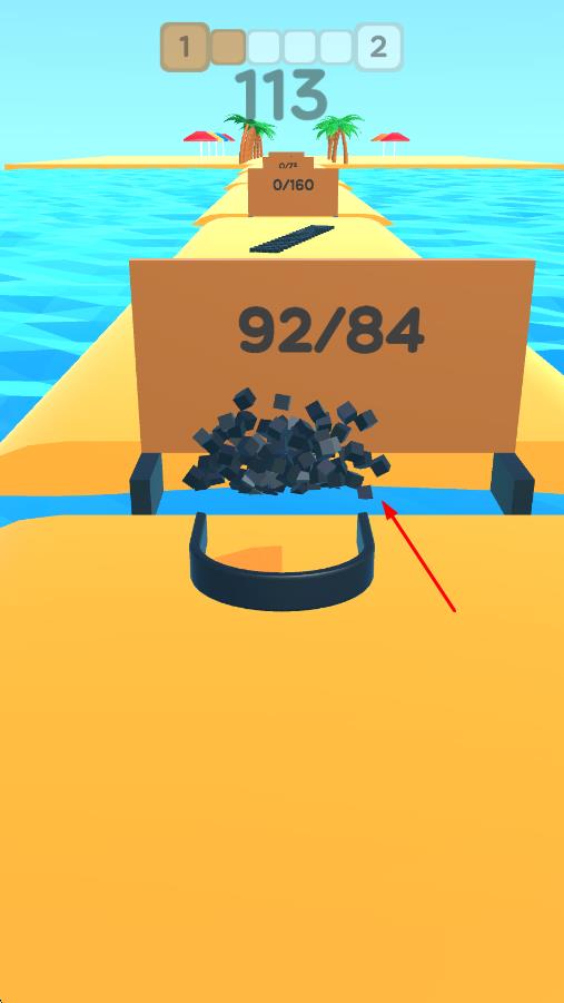 2、持续收集黑色方块,当遇到【92/84】这样的目标时,尽可能多收集以超额完成,推进关卡。