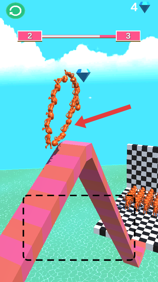 3、推进关卡,灵活调整人形链条的形态和移动速度,利用链条的柔韧性来跨越障碍,收集钻石并抵达终点。