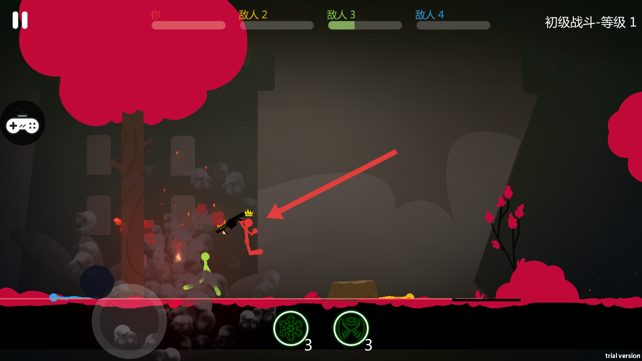 2、视觉风格独特:虽为火柴人画风,但战斗特效极具辨识度,火焰技能呈橙红动态效果,雷电技能带有电流蔓延动画,简洁却不单调,让战斗视觉更具冲击力。