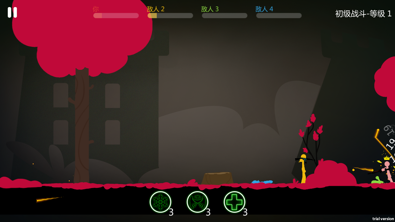 1、角色定位鲜明:火柴人角色分为突击型、辅助型等,突击型擅长快速近身,防御型能开启护盾抗伤,辅助型可释放治疗或减速技能,满足不同团队搭配需求。