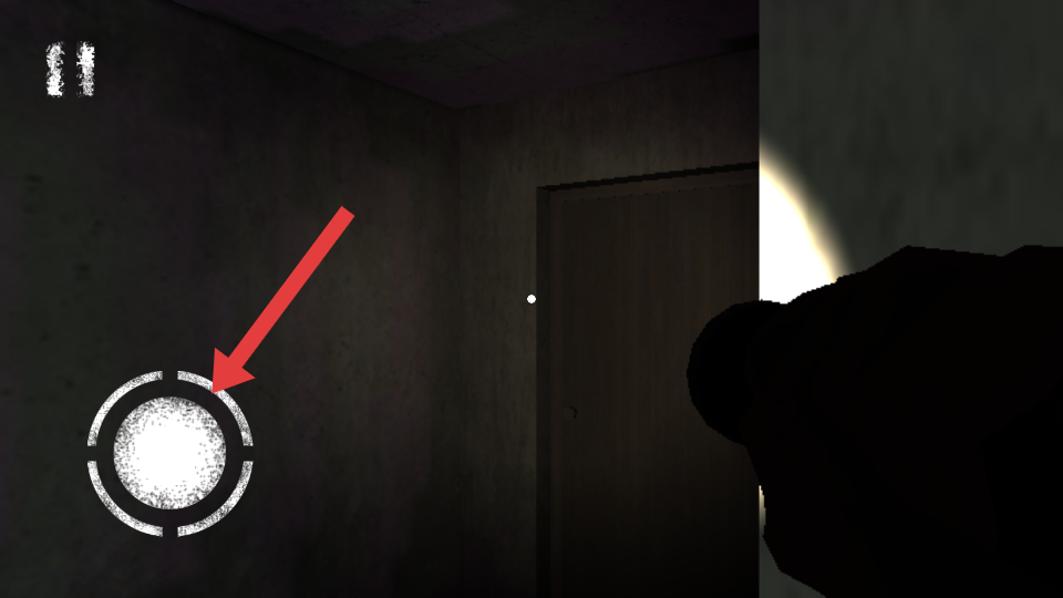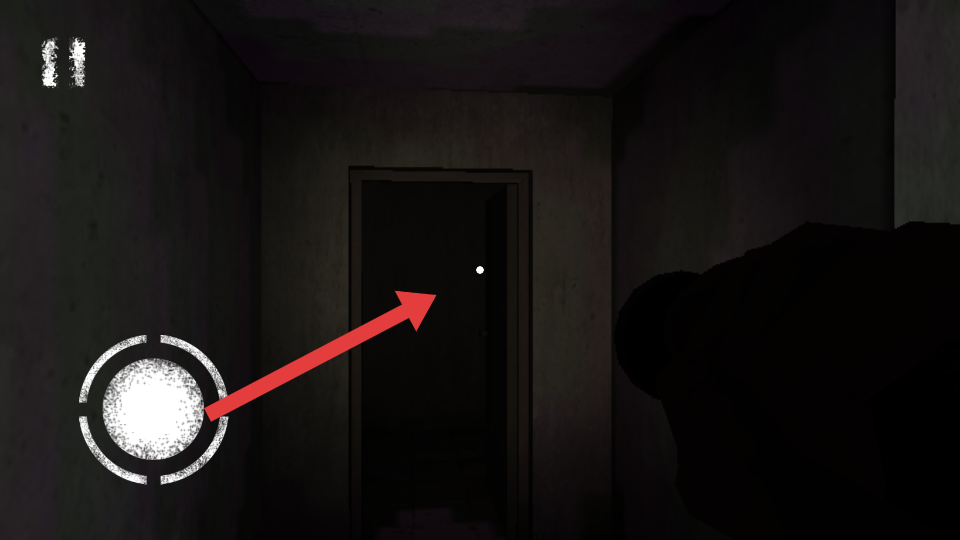 1、进入昏暗房间后,借助左侧操控区域移动,利用光照查看周围,重点靠近木门尝试互动开启,以此探索新区域。