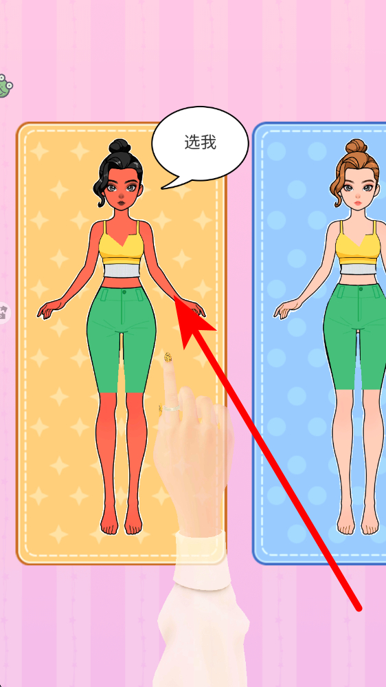 1、打开进入游戏应用后,在角色选择界面,有不同形象的角色可供挑选,玩家可根据喜好,选择其中一个角色,开启服饰搭配之旅。