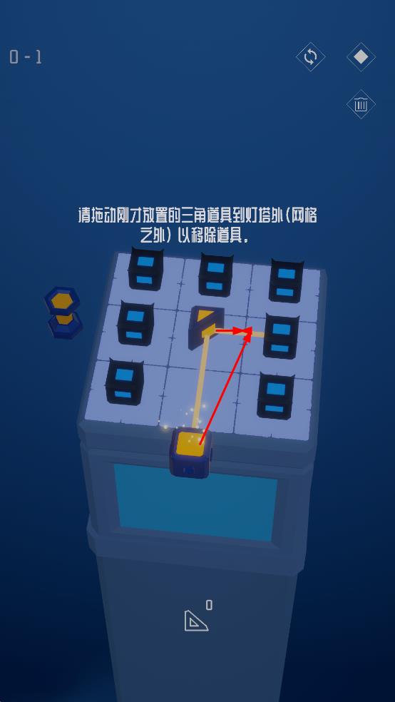 2、若需要移除已放置的三角道具,将其拖动到灯塔网格之外的区域,完成道具移除操作。
