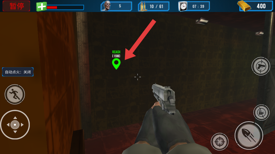 3、探索时跟随绿色REACH目标点的指引移动,朝着目标方向前进,同时保持警惕,应对可能会出现的敌人,按指引来推进流程。