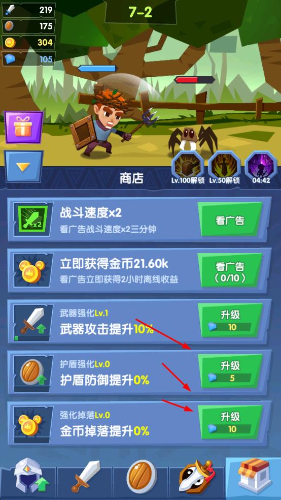 3、合成升级强化战力:使用收集到的素材与金币进行武器合成,合成后的高级武器能提升队伍战力,同时随着战力增强与冒险进度推进,解锁商店中更强的随从。