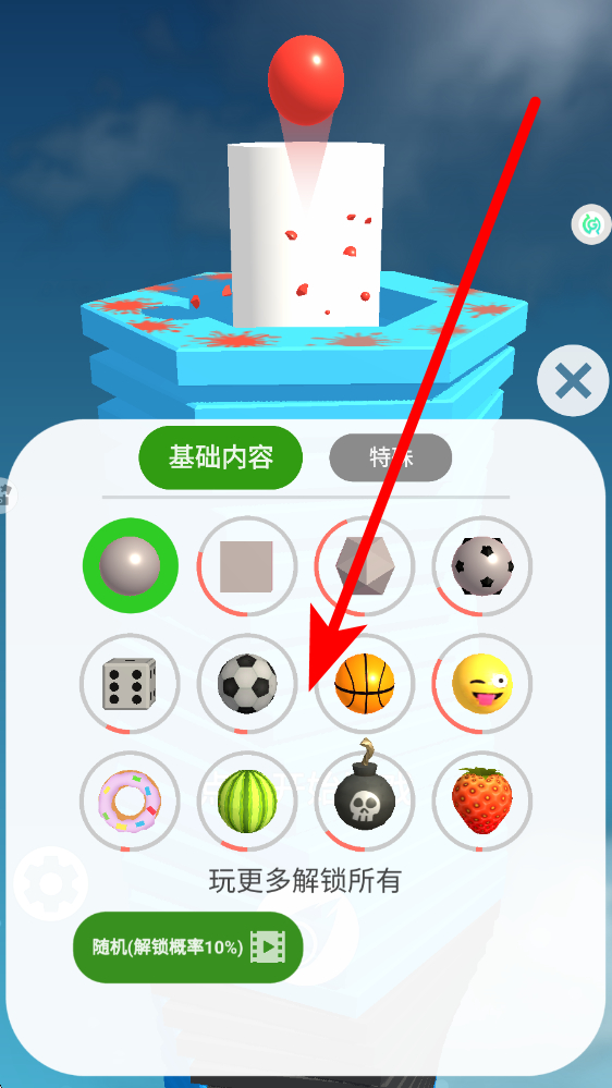 1、新人开始进入游戏应用后,可在基础内容等板块中选择球体样式,不同球体有不同外观,挑选心仪的球体,为滚动挑战做好准备。