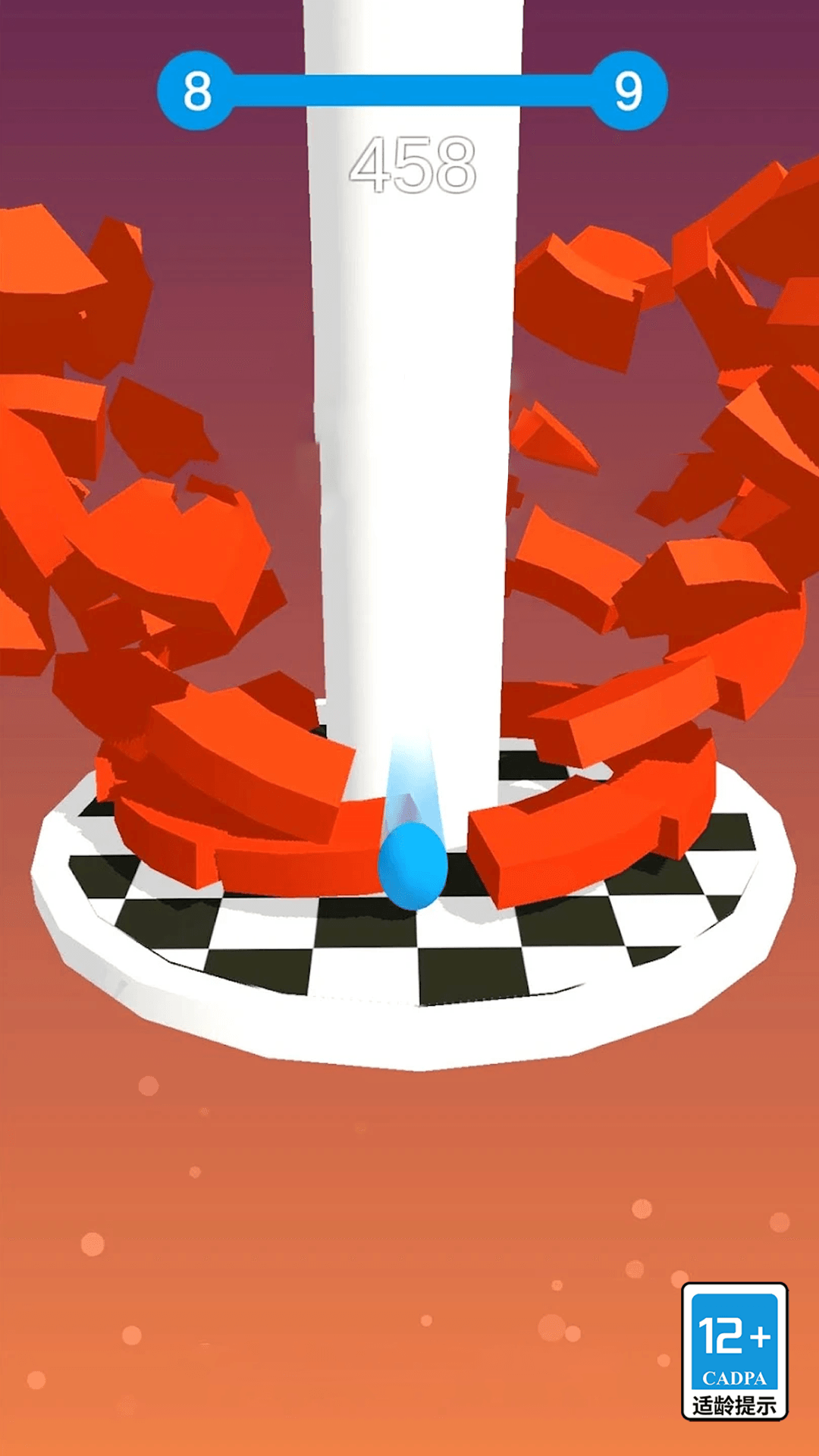 3、持续躲避黑色区域,让球体顺利通过堆叠的板块,到达关卡目标位置,完成关卡后,可点击继续,进入下一关,体验滚动躲避的乐趣。