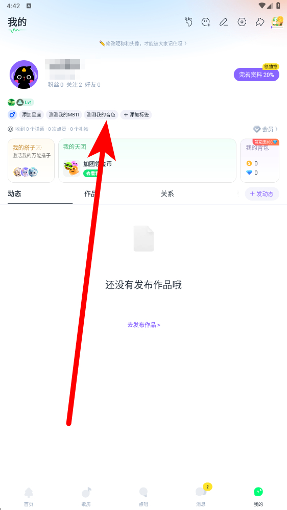 3、个性展示空间:每位用户拥有专属音乐主页,可展示演唱作品和收藏歌单,通过数据统计和等级系统记录个人音乐成长历程。