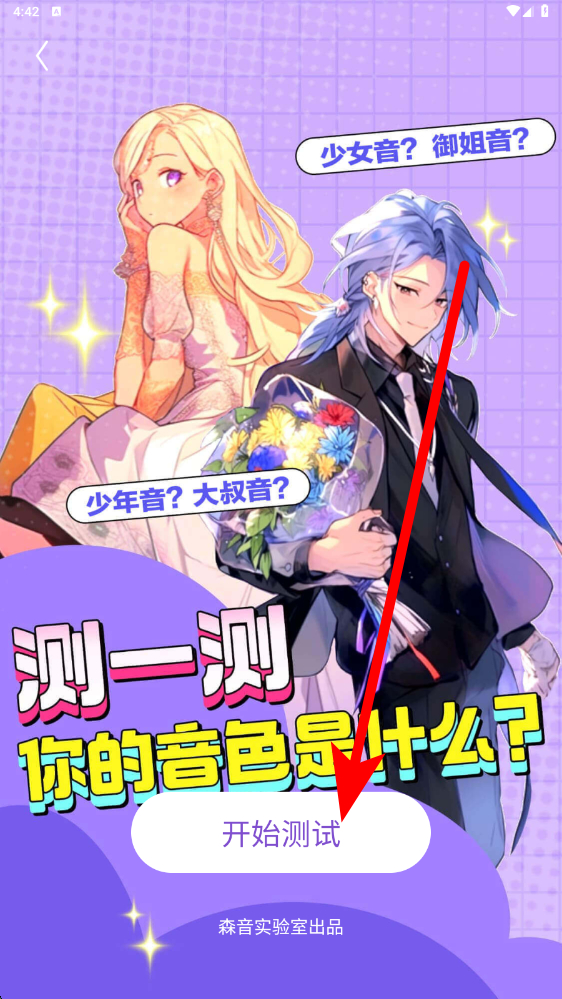 3、点击开始测试按钮,即可了解自己的音色类型,体验测音色的乐趣。