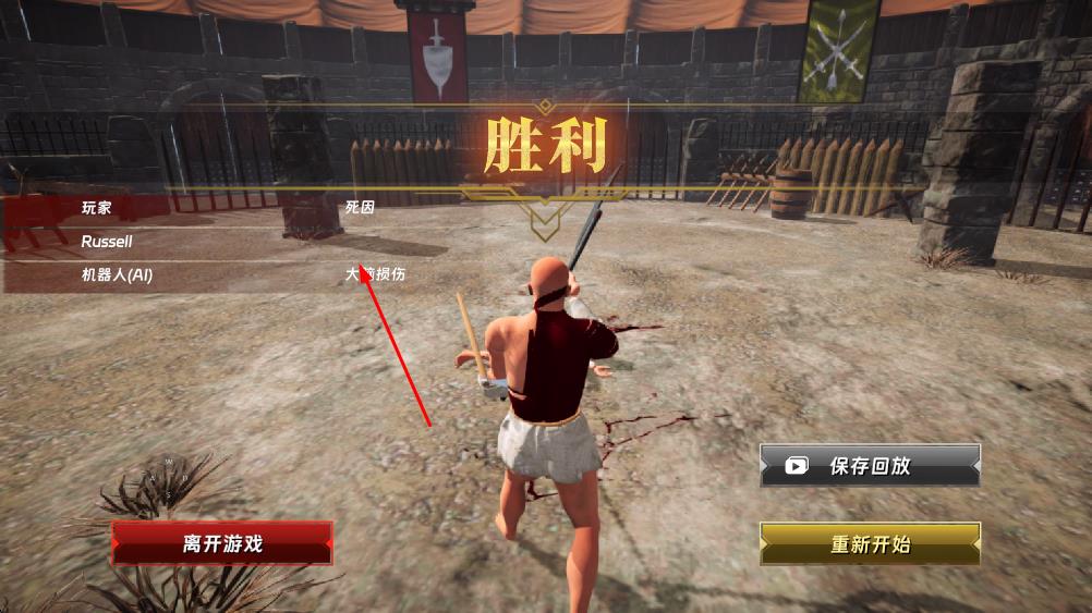 3、击败对手后,界面会显示胜利,此时可选择保存回放回顾战斗,或点击重新开始开启新的格斗,也能离开游戏结束进程。