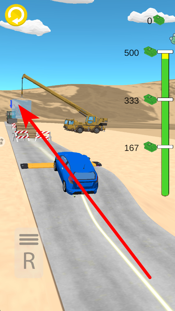 2、行驶过程中,要注意前方的各类障碍与目标,像画面中显示的特定区域,操控汽车朝着目标方向前进,穿越障碍,保持行驶的顺畅。