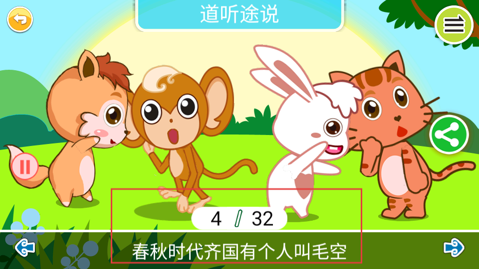 3、进入成语故事播放页面,即可观看道听途说等成语故事动画。