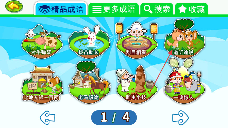 2、观看动画学习:点击所选成语故事,让孩子观看动画内容,家长可在旁陪伴,适时讲解动画中涉及的成语含义与背后道理,帮助孩子加深理解。