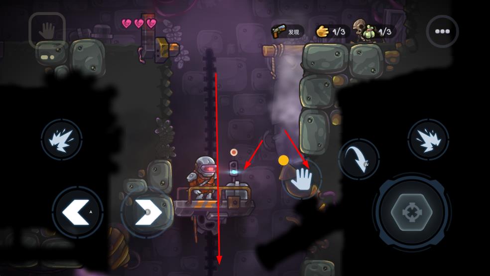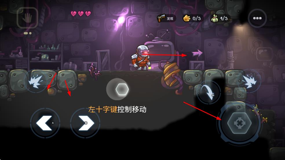 1、进入游戏场景后,通过左十字键控制角色移动,在科幻风格的地下区域探索,开启冒险之旅。