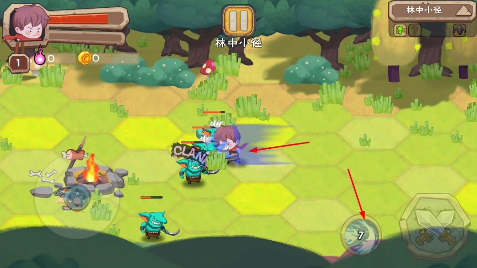 3、在战斗场景,操控角色与怪物交战,点击技能按钮释放技能,合理应对怪物攻击,推进冒险进程。