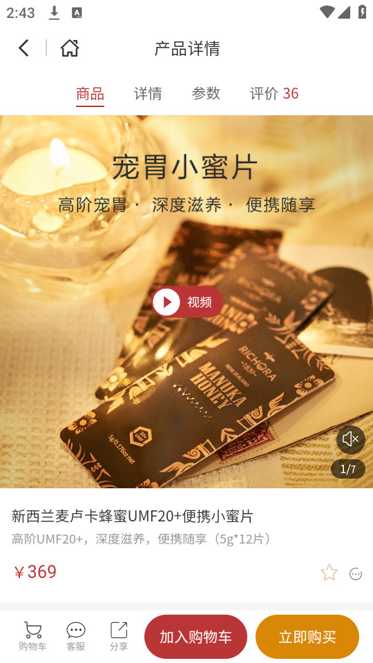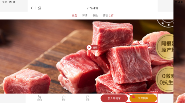 3、在产品详情页,点击立即购买按钮,进行商品购买操作。