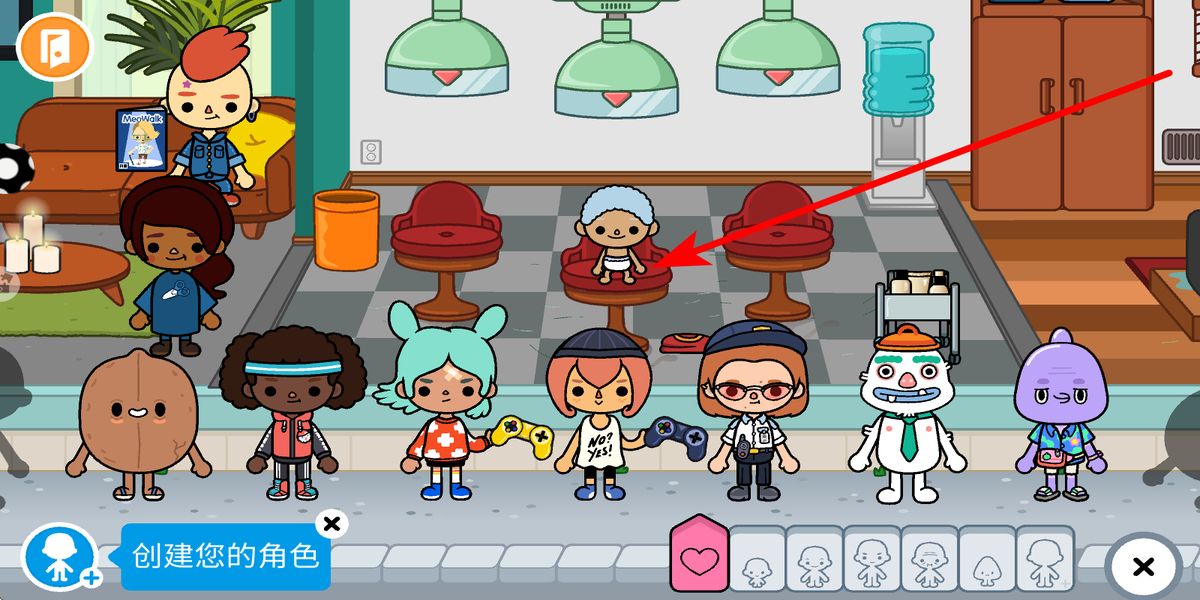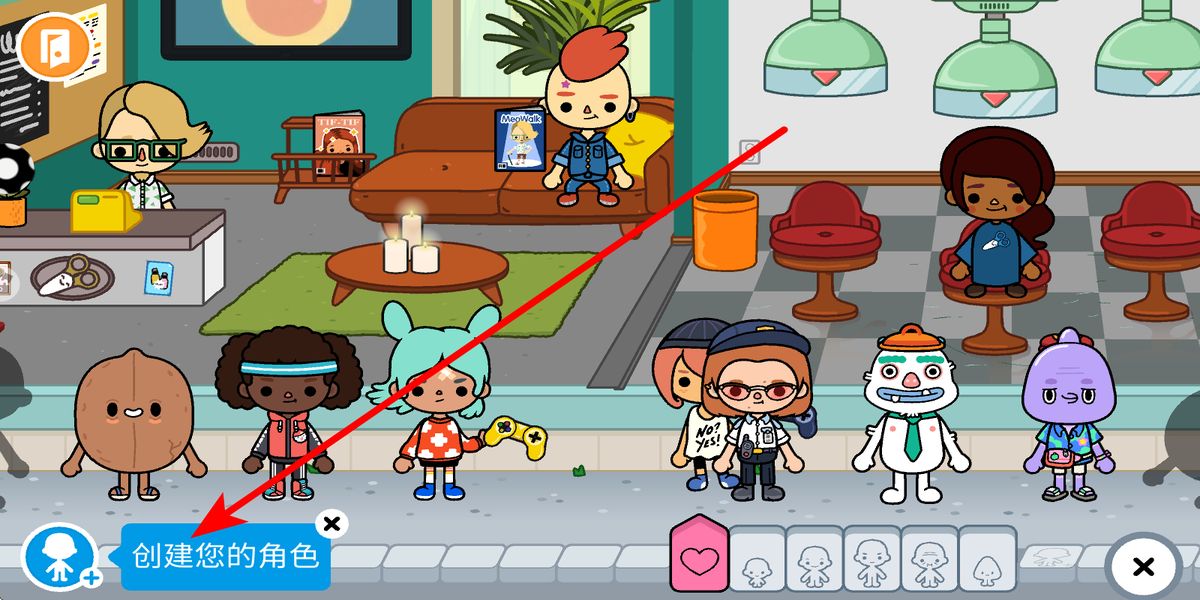 1、新人开始游戏后,在理发店场景中,找到创建您的角色按钮并点击,开启在小镇的角色创建之旅,准备塑造属于自己的独特角色。