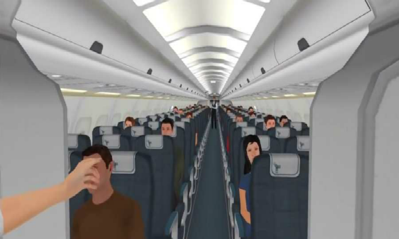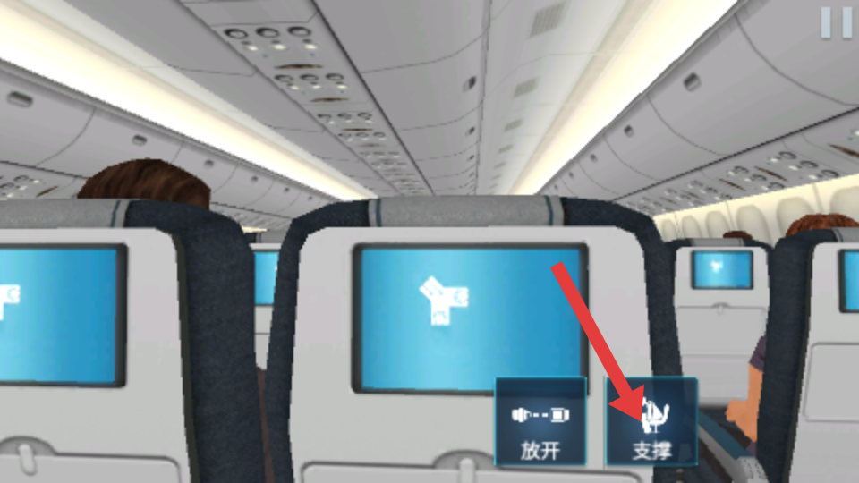 1、进入模拟乘飞机流程的游戏后,跟随屏幕指引向飞机客舱内移动,通过观察机组人员的手势或座位旁的标识。