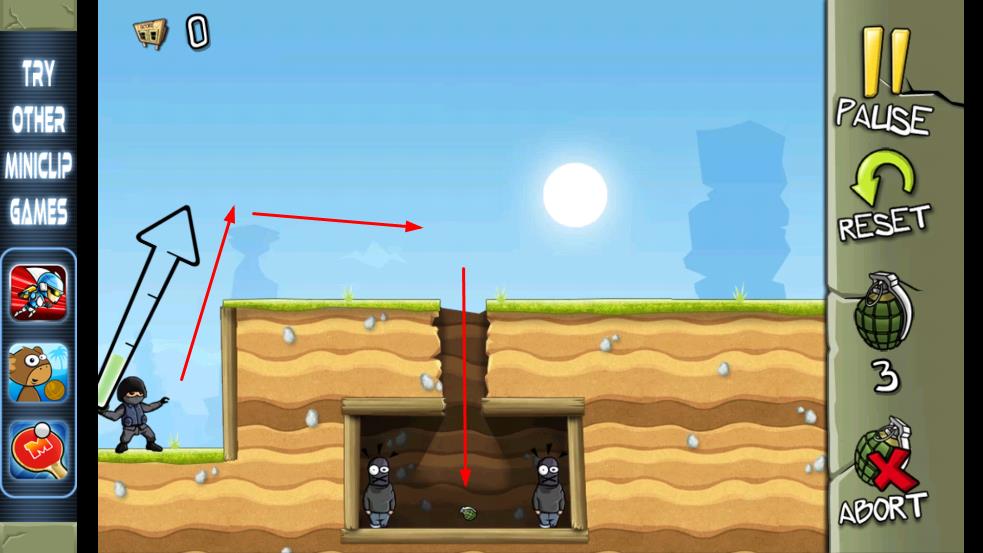 1、触控调整投掷参数:进入关卡后,通过触控屏幕拖拽设定投掷力度,转动角度瞄准目标区域,结合战场障碍物位置规划投掷路径,确保手榴弹能避开阻碍精准覆盖敌人或目标点。