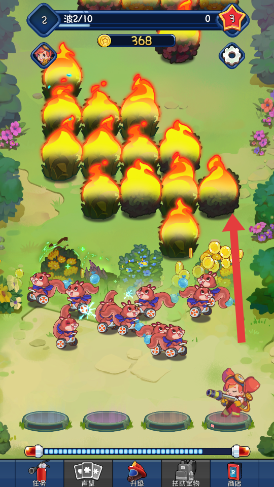 3、点击收集与宠物照顾:在森林场景中点击屏幕收集硬币,利用硬币为救出的小动物购置所需物资,照顾其生活需求;灭火成功后等待精灵出现,见证精灵的复苏森林。