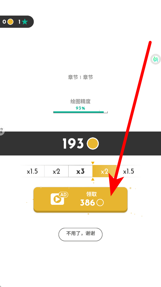 3、完成关卡内的画线互动任务后,会进入奖励领取界面,在该界面可选择领取相应的奖励,积累奖励数量,为游戏进程提供助力。