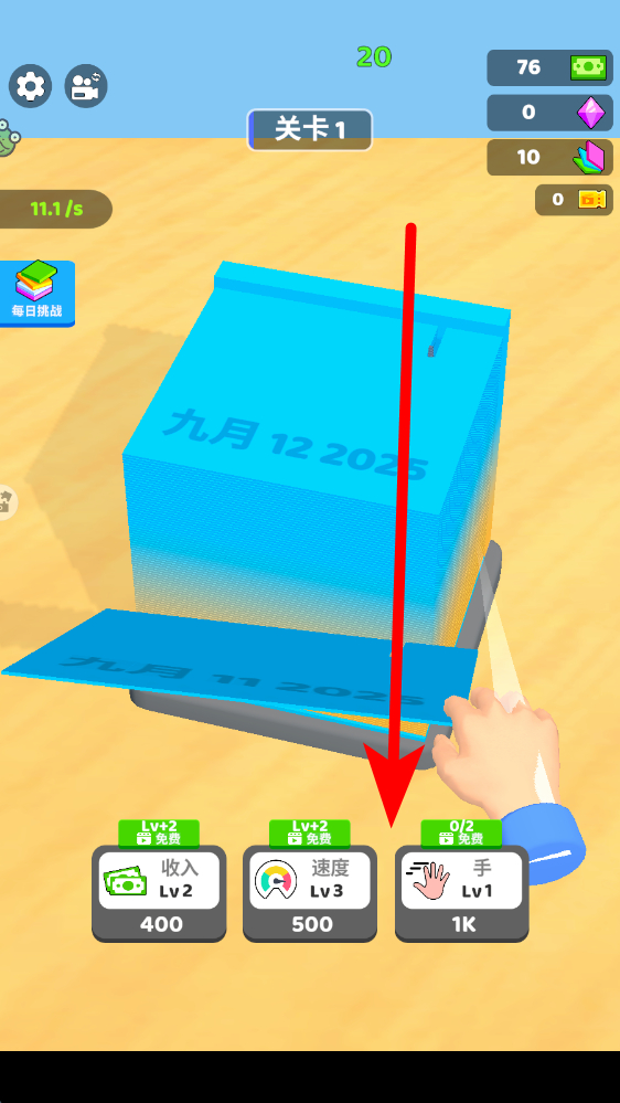 3、撕纸过程中或完成后,会获得收入、速度、手等方面的提升选项,根据需求选择提升,增强后续撕纸的效率与体验,不断推进进程。