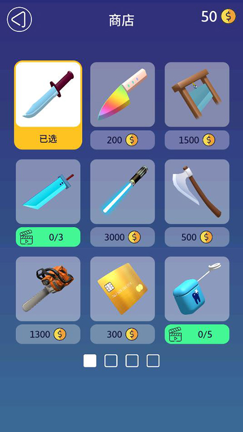 3、可前往商店,花费金币或通过任务获取不同刀具,更换刀具助力更高效地完成切割任务。