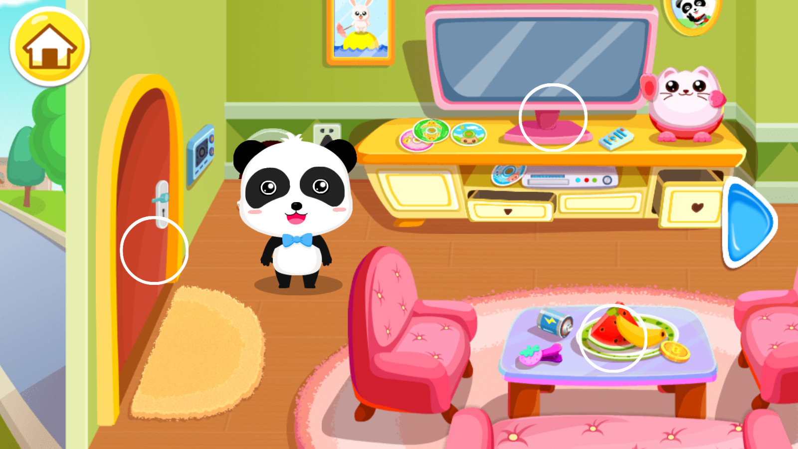 1、场景探索与隐患发现:引导孩子按客厅→厨房→浴室→卧室的顺序探索,每进入一个新场景,先观察画面中的物品,寻找与平时不一样的地方。