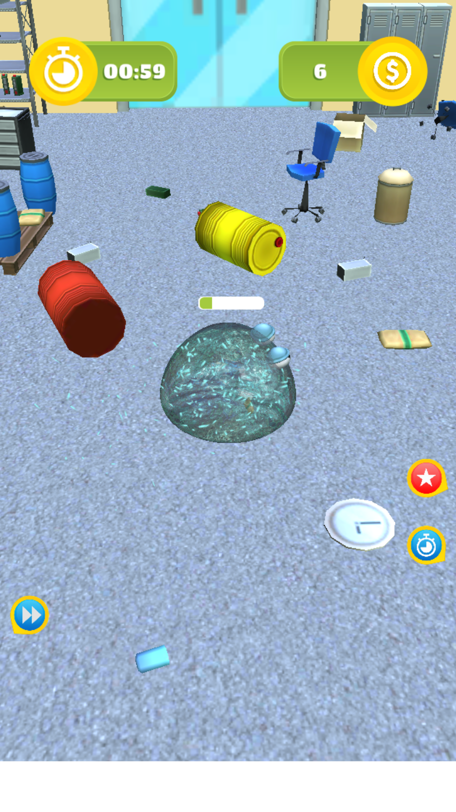 3、随着游戏推进,利用收集到的资源让果冻怪兽变大变强,在规定时间内获取更多金币,完成关卡挑战。