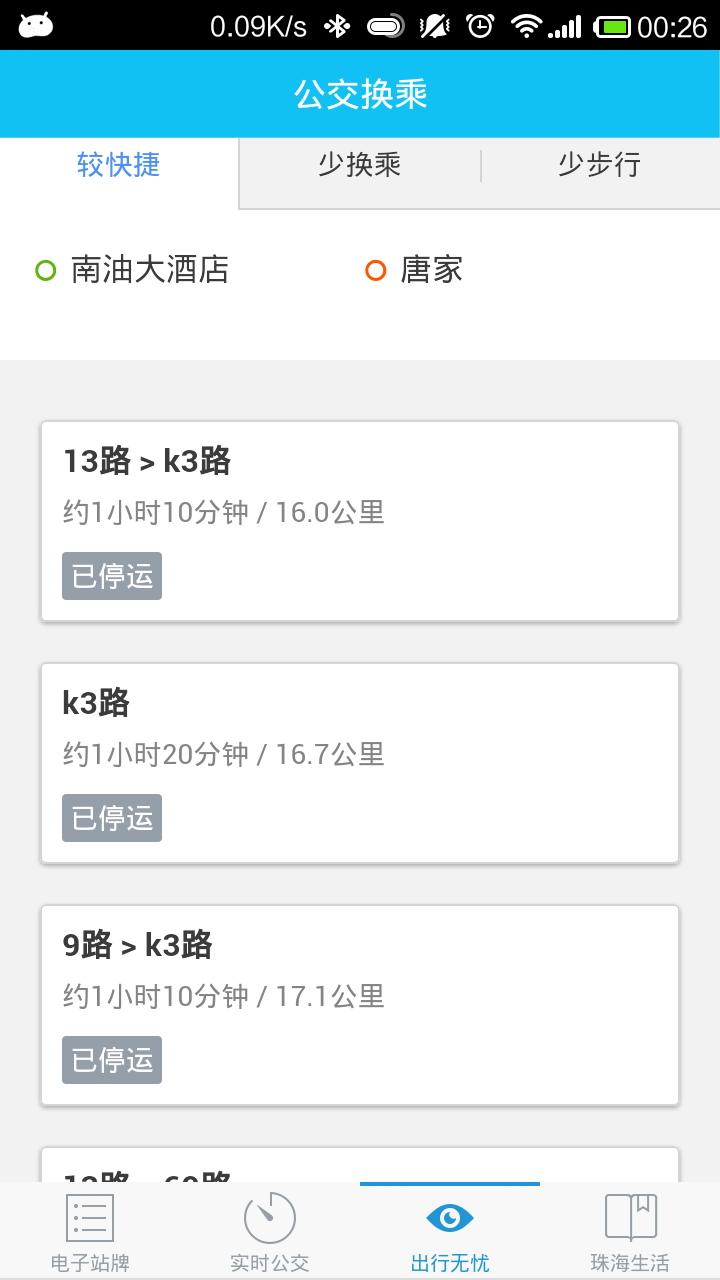 2、支持在线查询公交换乘线路,帮你列出详细的换乘方案,以及最快、少步行以及少换乘的方案
