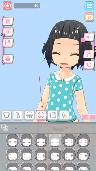 3、点击表情图标,从下方表情选项中选择喜欢的表情,完成角色穿搭和表情设定。