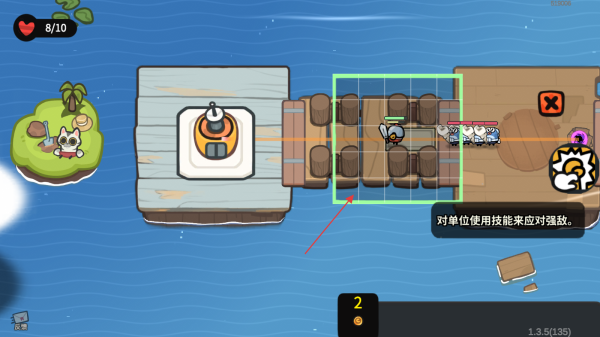 1、进入游戏查看左上角生命值如8/10,操控己方角色攻击敌方角色。