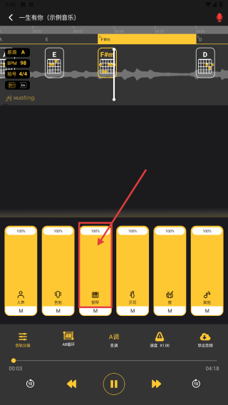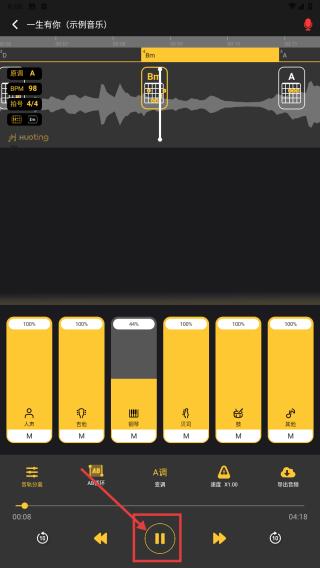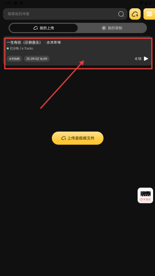 1、打开应用,点击一生有你示例音乐-水木年华,进入音乐编辑界面。