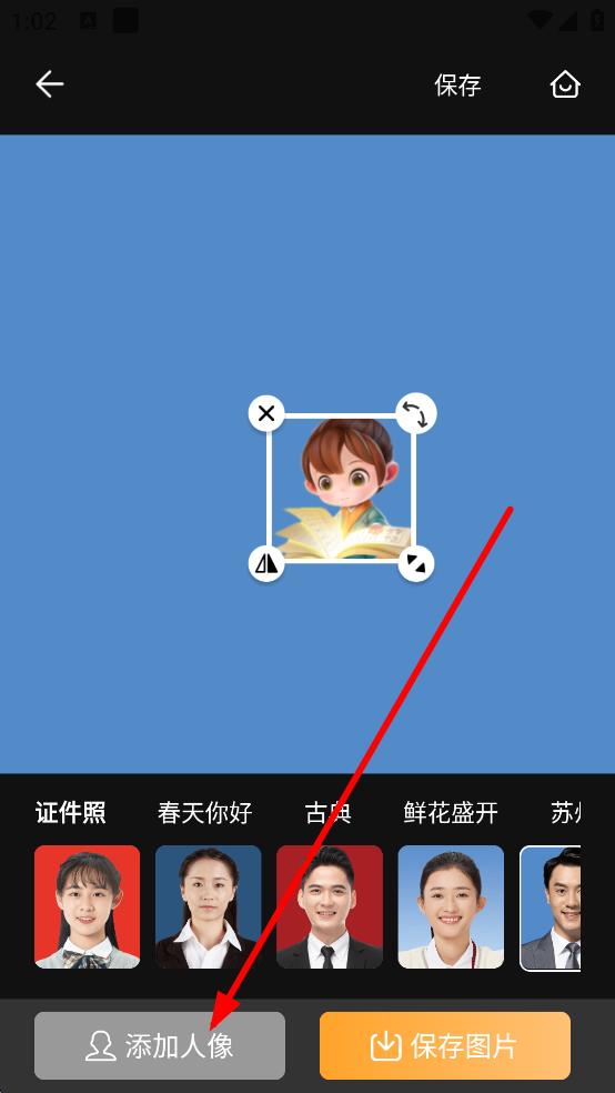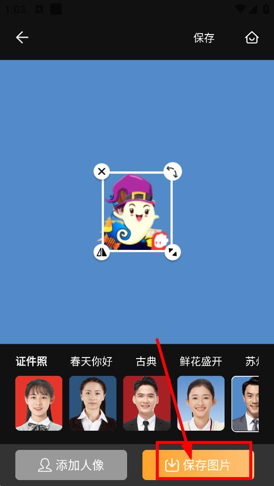 3、添加好人像后,点击保存图片,保存制作好的证件照。