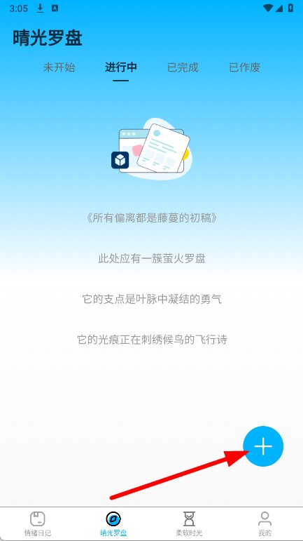 2、在晴光罗盘页面,点击右下角的蓝色+按钮,进入新建Flag界面。