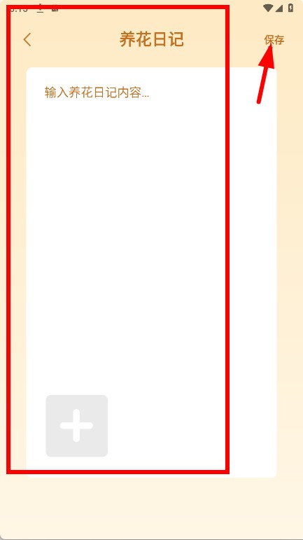 3、在编辑界面的输入框中填写养花日记内容,点击右上角保存按钮。