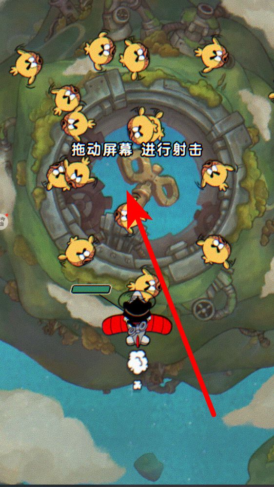 1、进入游戏后,按照提示拖动屏幕,就能操控飞机发射攻击,面对围绕的黄色小鸟等目标,通过灵活拖动屏幕调整射击方向,精准打击敌人。