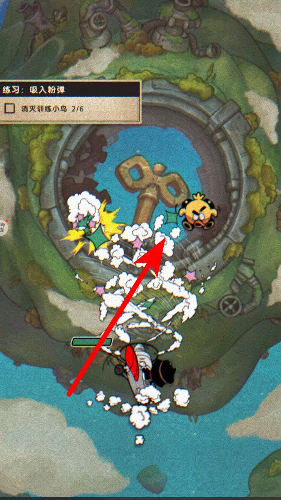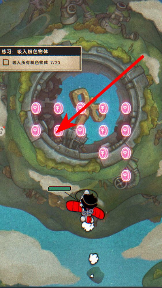 2、吸入粉色物体的练习任务,要留意场景中粉色物体的分布,驾驶飞机靠近它们,利用飞机的吸入功能,逐步收集,朝着完成目标的数量努力。