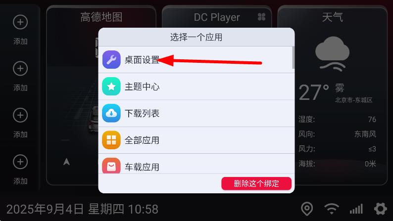 2、在选择应用弹窗中,点击桌面设置,可进入桌面设置。