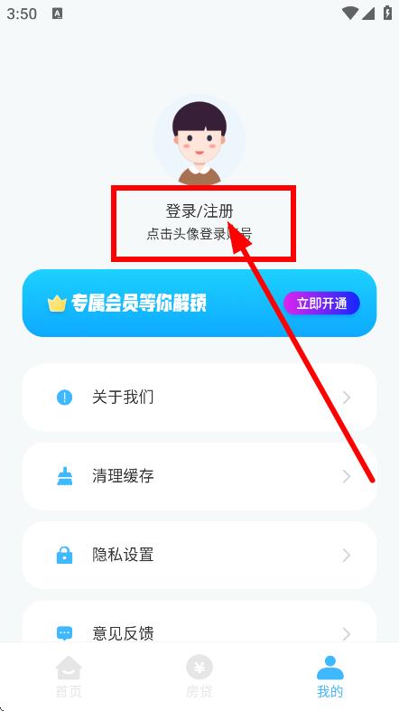 1、在我的页面,点击登录注册,进入登录注册界面。