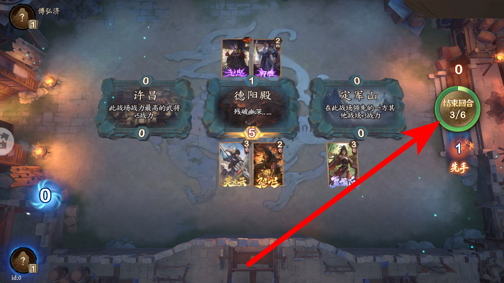 3、当本回合的操作完成后,点击结束回合按钮,进入下一回合,在后续回合中,继续部署卡牌、调整策略,通过多回合的博弈,最终赢得对战胜利。