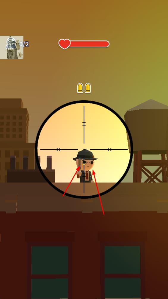 3、在射击场景里,瞄准目标人物,借助瞄准镜精准射击,同时留意上方生命值与弹药数,保障战斗续航和角色安全。