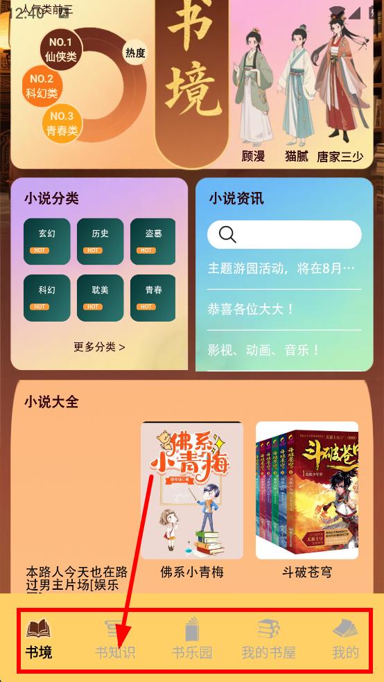 1、在软件底部的导航栏,点击书知识,进入书知识页面。