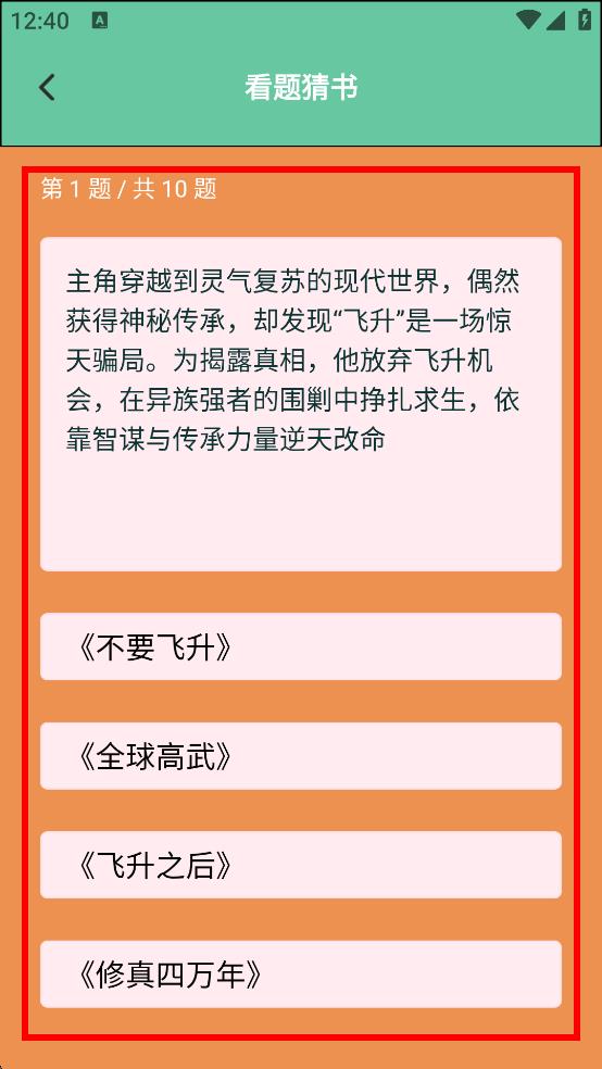 3、在看题猜书答题,根据题目描述,选择对应的书籍选项。
