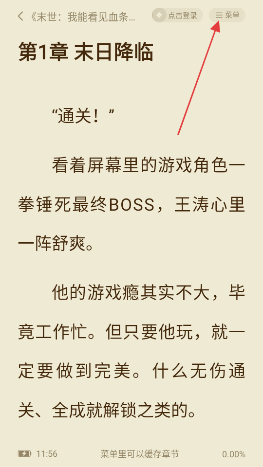 2、在阅读页面,点击菜单,展开更多功能选项。