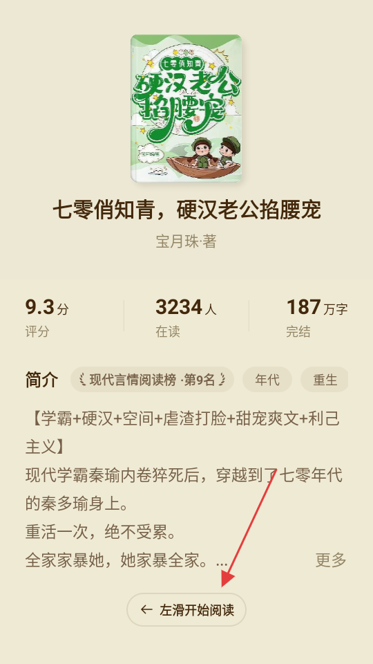 1、在书籍页面,左滑开始阅读书籍内容。